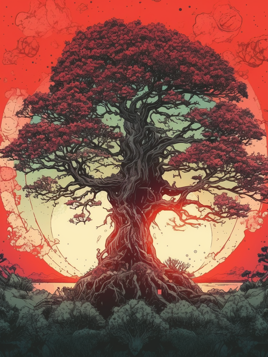이번 포스팅은 세계수와 불, 태양의 이미지를 조합하여 만든 그림입니다.